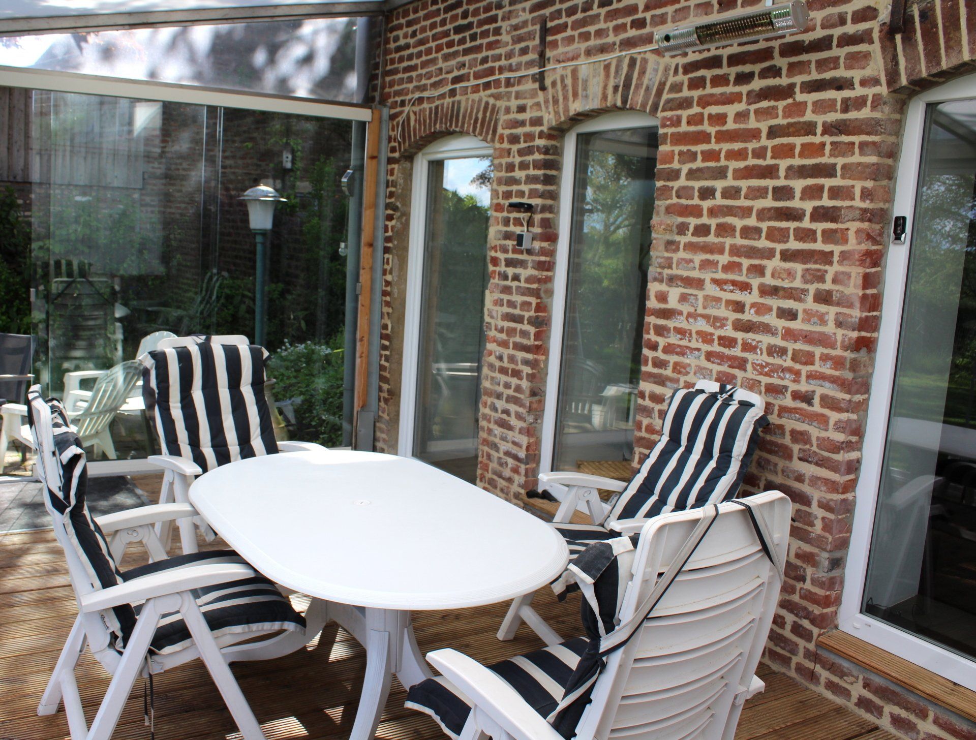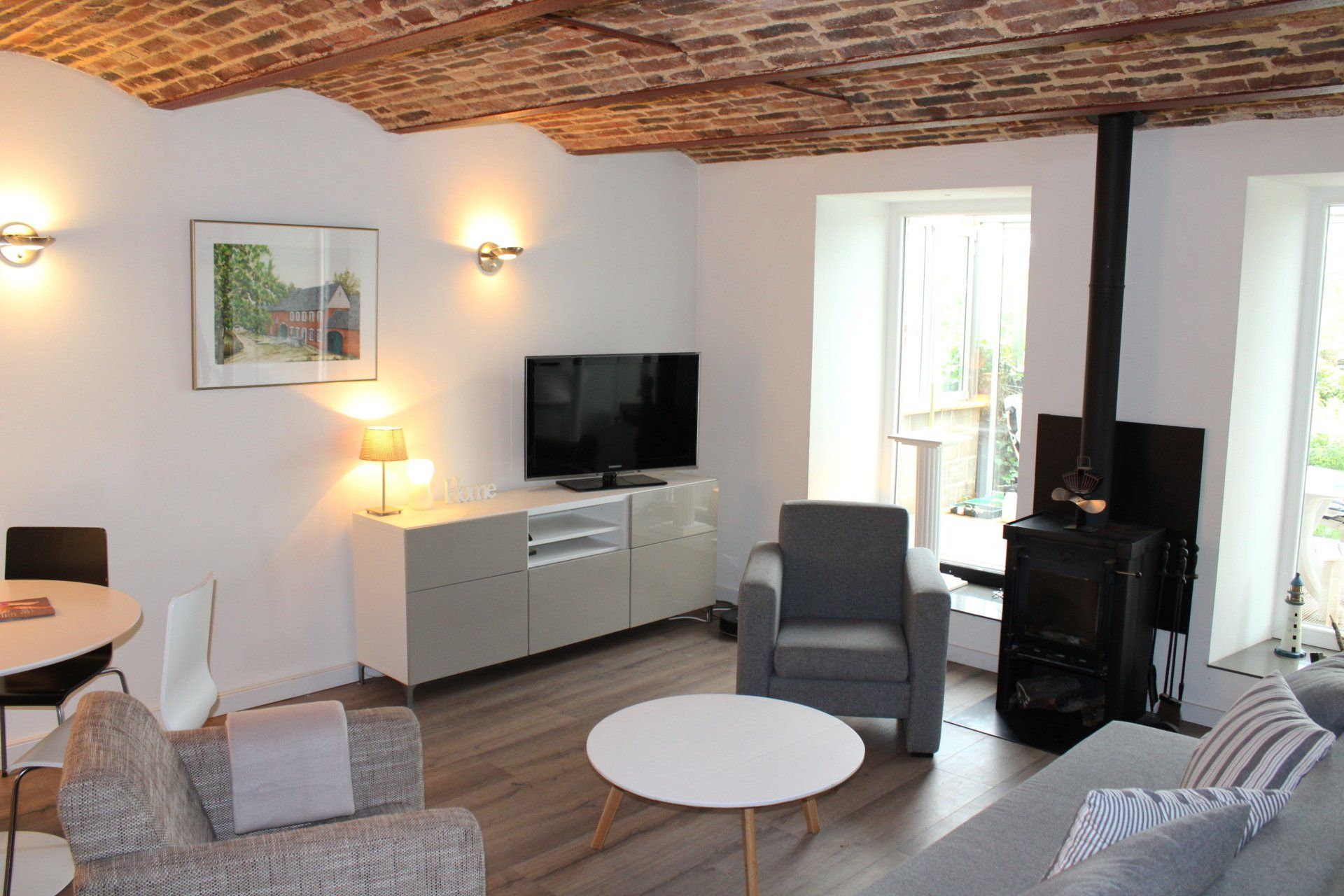 Het verblijft biedt optimale privacy en heeft zijn eigen entree, toilet, woonkamer met open keuken en houtkachel, serre met glazen vouwwand, slaapkamer en badkamer met douche.